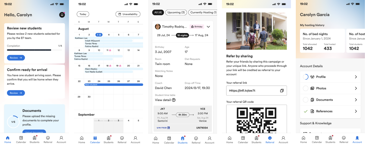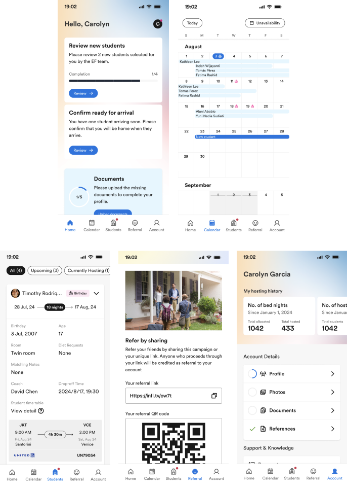 Bringing together everything host families need, from reviewing allocations to payments and referral programs, in one organised application.